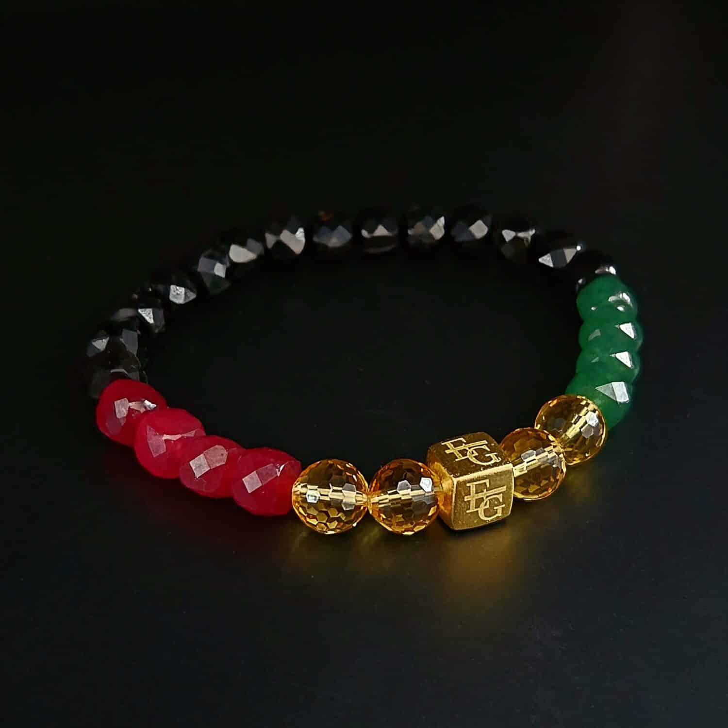 Deze armband is meer dan een accessoire – het is een verhaal. Een eerbetoon aan Kingston, bakermat van de Rastafari-cultuur, waar kleur, ziel en muziek samenkomen. De gouden accenten verwijzen naar koninklijke kracht en eeuwige nalatenschap; de stenen representeren de trendsetter, de voorspeller en de visionair die zijn stempel drukt op de stad en zijn tijd.