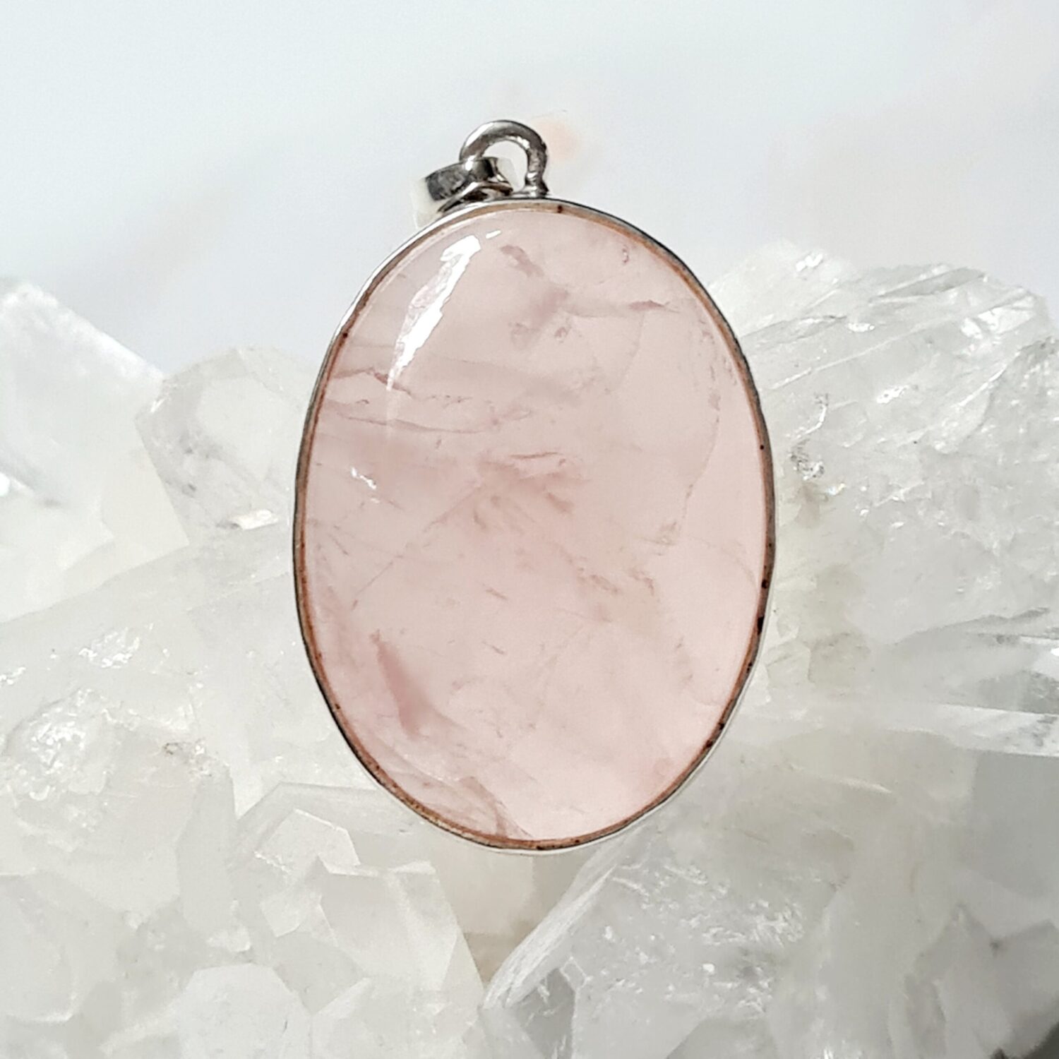 Hangers Rozenkwarts Ovaal 3 Groot – 925 Zilver met Edelsteen