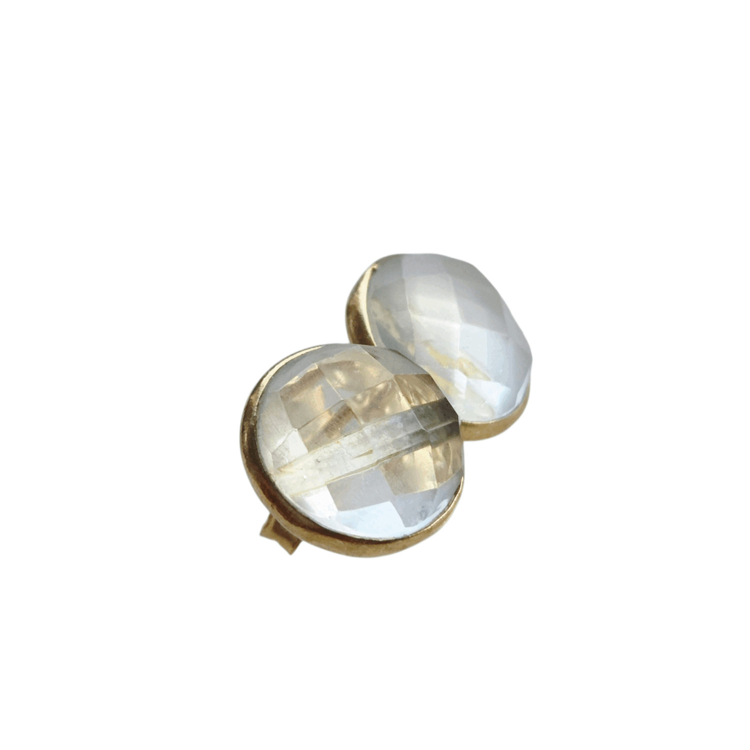 De “White Orchid” oorknopjes benadrukken zuiverheid. Bergkristal (10 mm) schittert minimalistisch in gold plated met 925 kern.