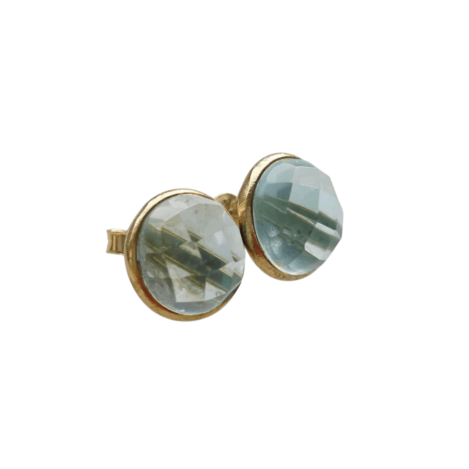Oorknopjes met blauwe Zirkonia 10 mm, gold plated met 925 zilver kern. Fris en inspirerend.